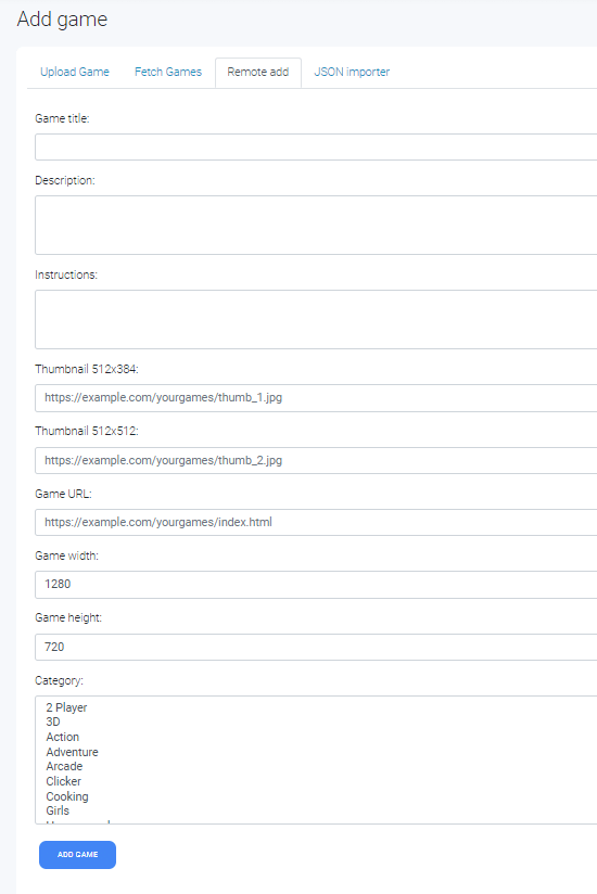 This can be useful if you want to add a game from another source or if you already have games on other domain or server.